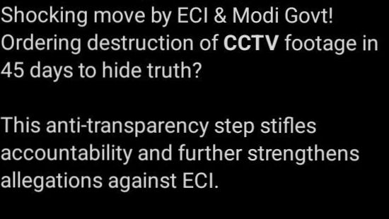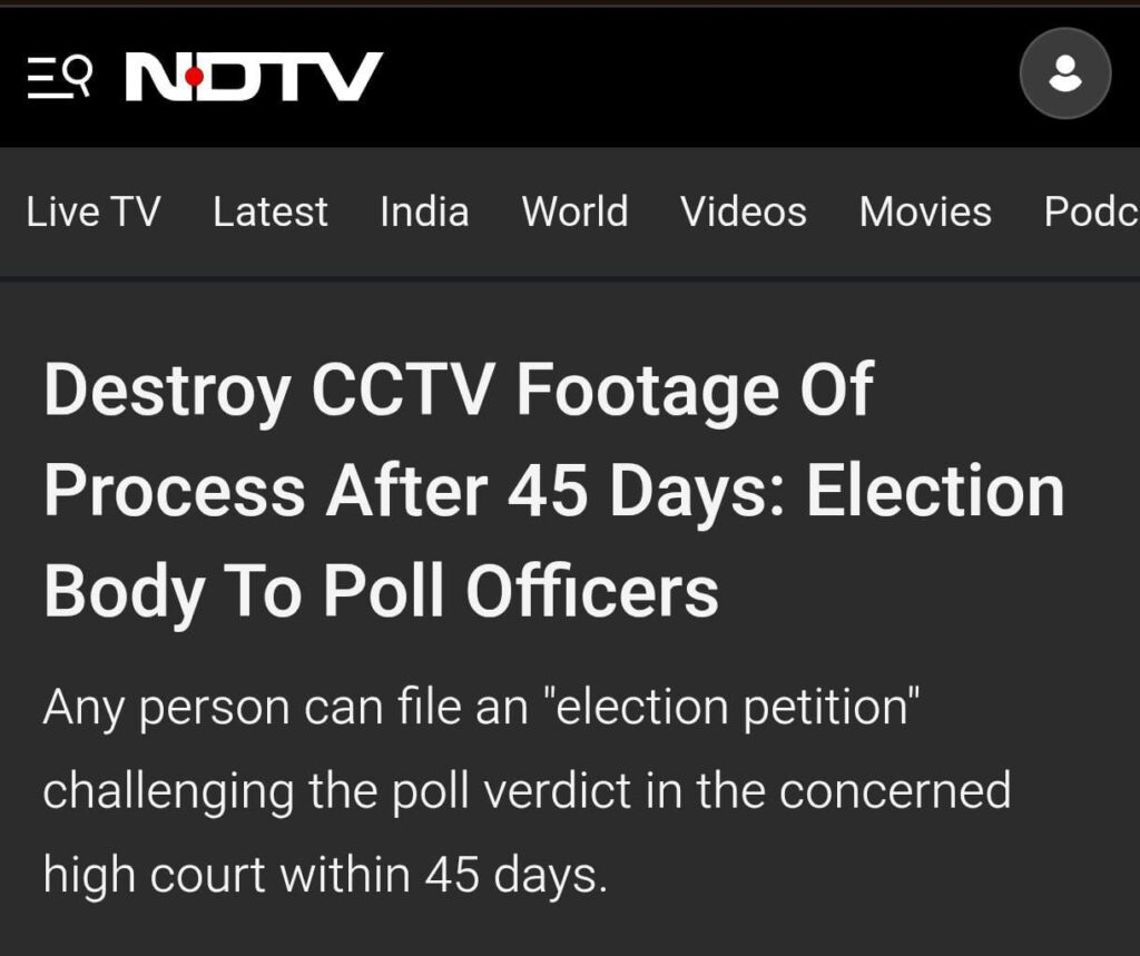 CCTV के बारे में और electronic footage संबंधित elections, the ECI (Electronic Commision of India) CCTV, चुनाव प्रक्रिया की वीडियो फुटेज 45 दिनों के बाद उपलब्ध कराई जाएगी, यदि उस अवधि के दौरान परिणामों को चुनौती देने वाली कोई चुनाव याचिका अदालत में दायर नहीं की जाती है। यह निर्णय अधिकार के दुरुपयोग को रोकने के लिए लिया गया था।