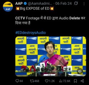 AAP कह रहा हे CCTV Footage ED द्वारा Audio भी Delete कर दिया गया है।